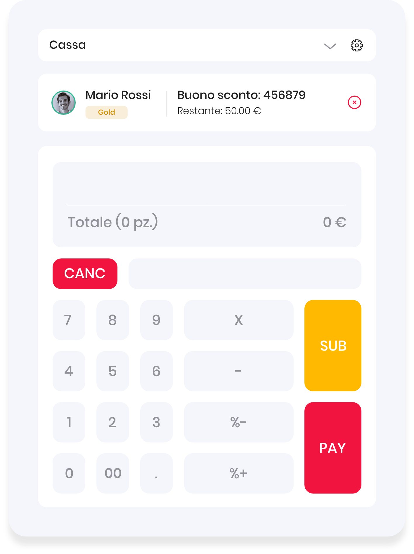 Genera scontrini elettronici in pochi clic: aggiungi i prodotti acquistati, applica scontistiche, registra la modalità di pagamento (contanti, bancomat o carta), associa la vendita ad un cliente ed emetti il documento commerciale.